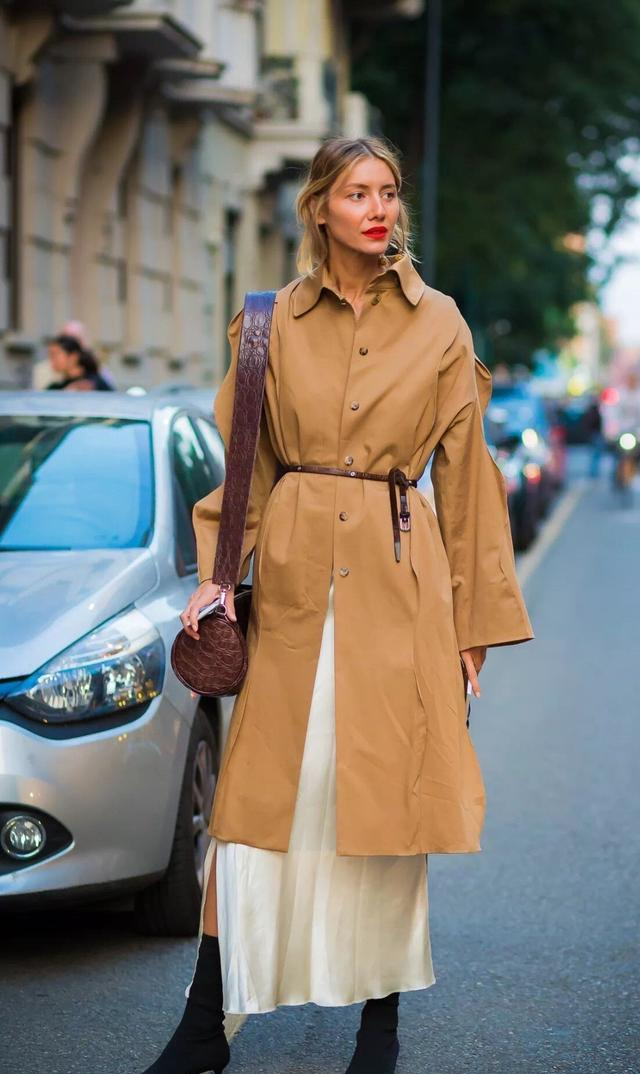 Dress is a very feminine single product. Its types are relatively diverse, and there are many styles that can be used with long trench coats. The line of the dress is relatively smooth, which strengthens the feminine characteristics, and the unique charm of the figure can also be well highlighted. The windbreaker jacket is also a more masculine single product that weakens the presence of women. Combining the two together, the dress can neutralize the masculine characteristics of the windbreaker, revealing a hint of femininity in its handsomeness, and it is unique.