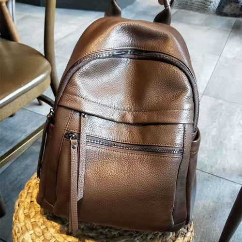 Caramel Real Genuine Leather Backpack Women Simple Fashion