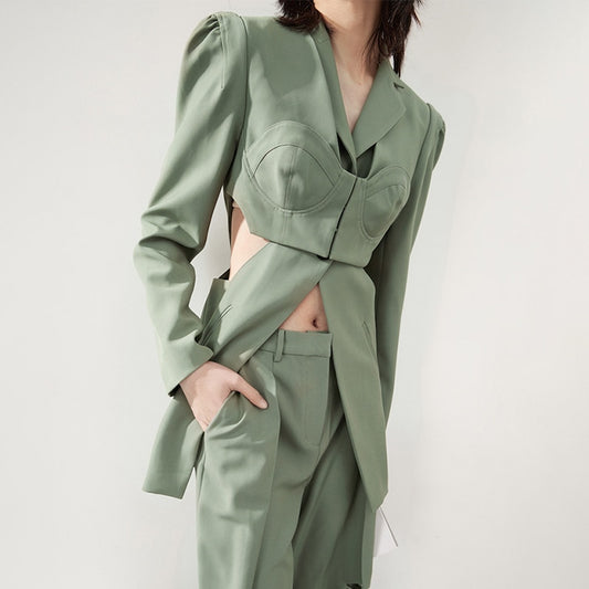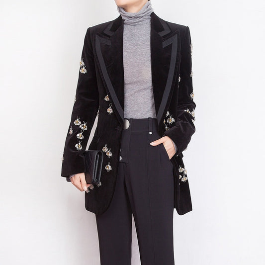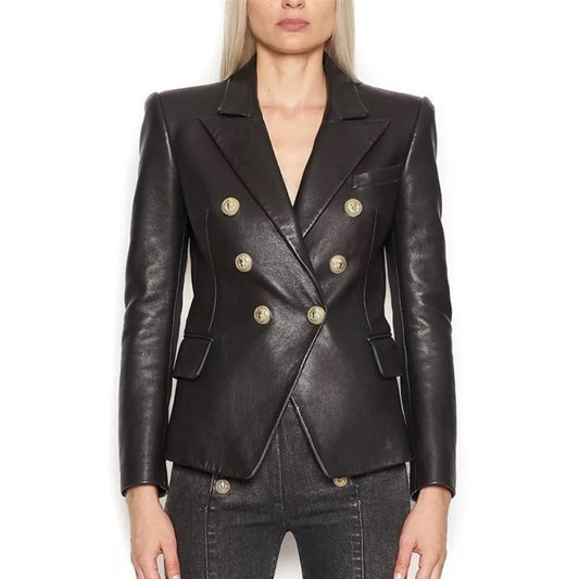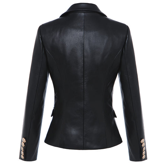 Lion Metal Buttons Faux Leather Blazer Outer Coat