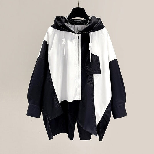 Chic Hooded Color-block Coat Women Spring Overcoats