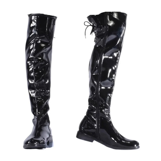 Carved Martin boots thick-soled special-shaped head pedicure cowhide bright black leather boots flat men's boots