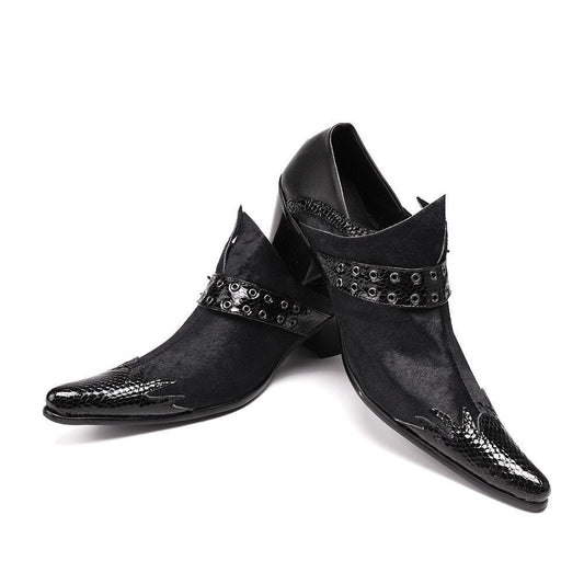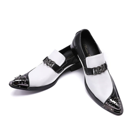 Black and White Joint Genuine Leather Rivet Party Shoes for Men