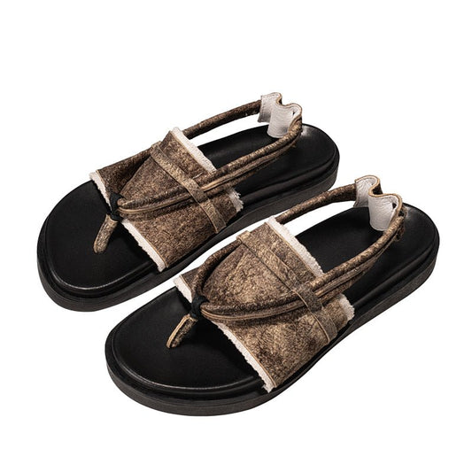 Men Platform Sandals Summer Casual Leather Beach Shoes