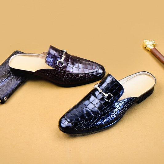 British Style Mens Slip-On Cowhide Korean Style Casual Lazy Sandals