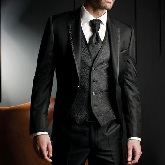 Black Wedding Groom Man Tail Suits 3 Piece Set