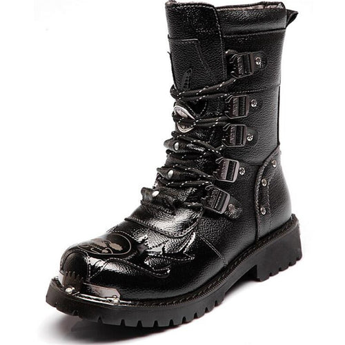 Carved Martin boots thick-soled special-shaped head pedicure cowhide bright black leather boots flat men's boots