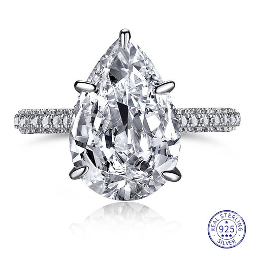 Silver Oval Pear Cut White Sapphire Created Moissanite Ring