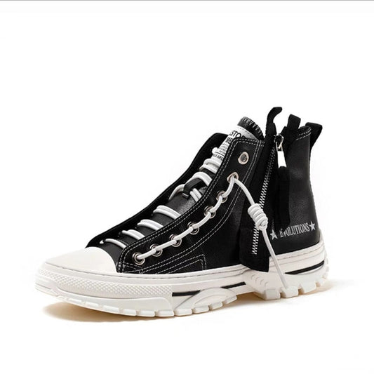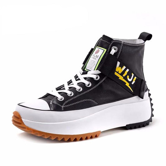 New High Top Platform Sneakers Black Unisex Genuine Leather Thick Sole Shoes Man Height Increase Chunky Shoes Walking Shoes Men