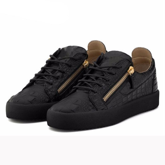 Mens Casual Shoes Mens Casual Sneakers Black Pleated Stone Grain Shoes Man Metal Zipper Design Flat Platform Comfortable Loafer
