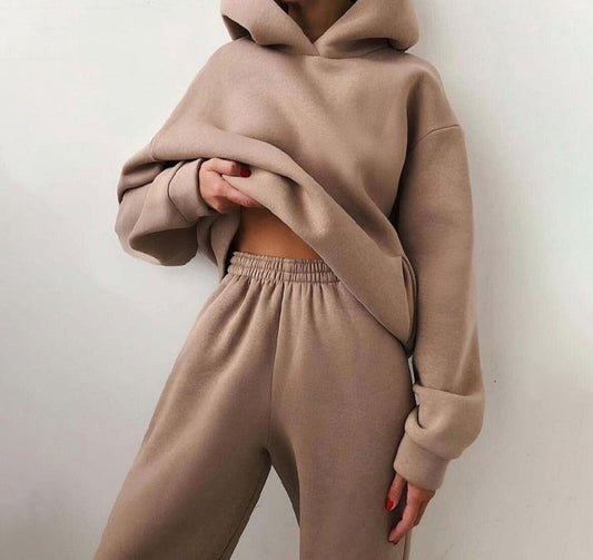 Women Warm Hoodie Sweatshirts Two Piece Sets