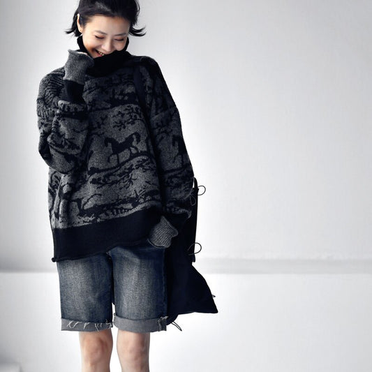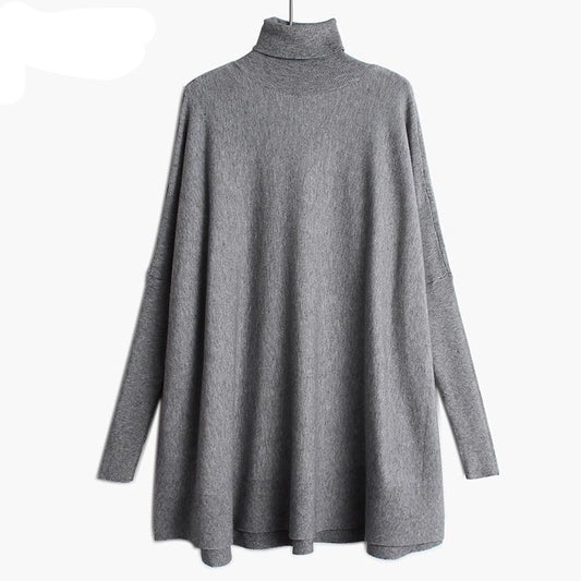 Irregular Big Size Knitting Sweater Poncho Loose Turtleneck