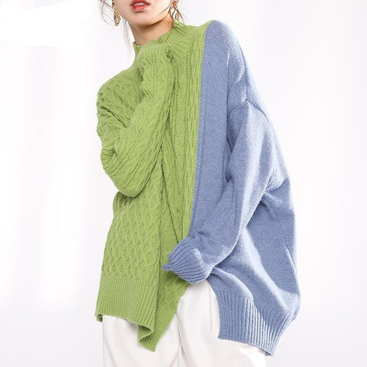 Pelated Split Big Size Knitting Sweater Loose Fit Turtleneck