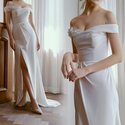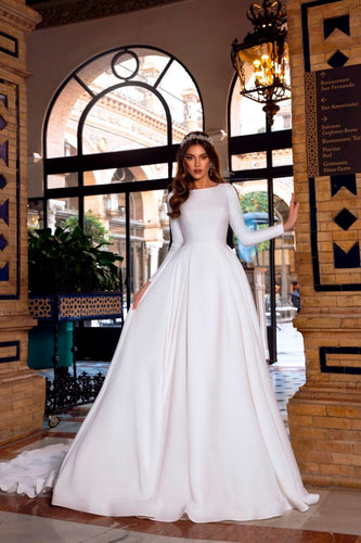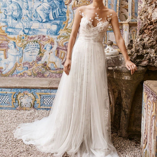 A-line Wedding Dress with Pleat Belt Sweep Train