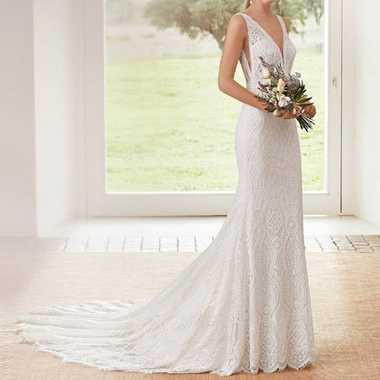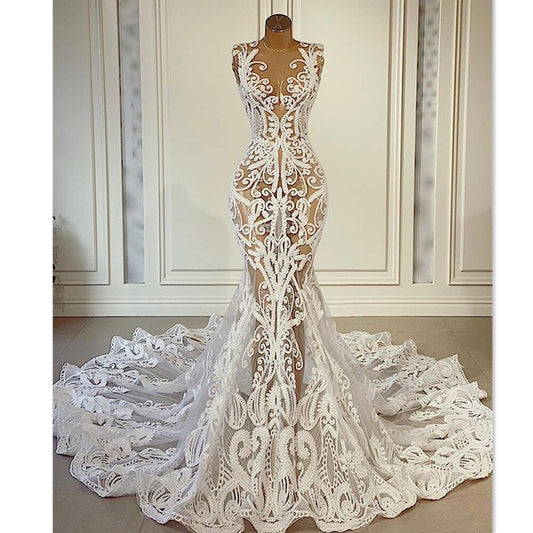 Illusion Back Elegant Lace A-Line Bridal Gown