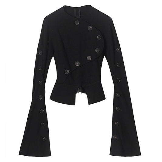 Women Black Shirt Button Irregular Long Flared sleeves Shirts