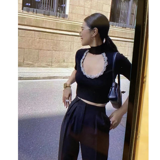 Ruffled Deep V-neck Silk Shirt Flare Sleeve