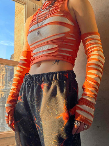 Cut Out Crop Top With Arm Gloves Streetwear Aesthetic Tank Tops