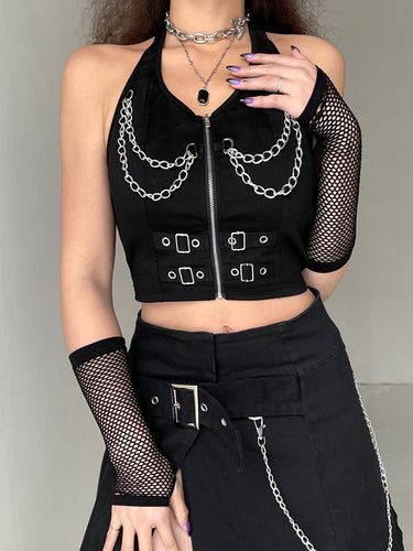 Punk Halter Crop Top Women Chain Bandage Tank Tops Streetwear