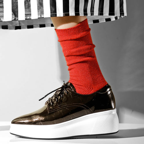 Women shoes Pointed toe lace up flats creepers moccasins