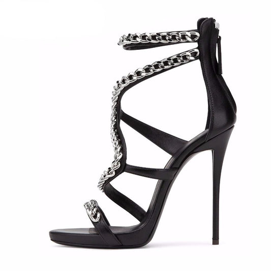Women Sexy Red High Heel Sandals with Chain Black Strappy Extremely High Heels Ladies White Stiletto Summer Evening Dress Shoes