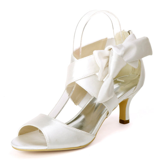Mid Heels Satin Wedding Sandals for Bride Open Toe