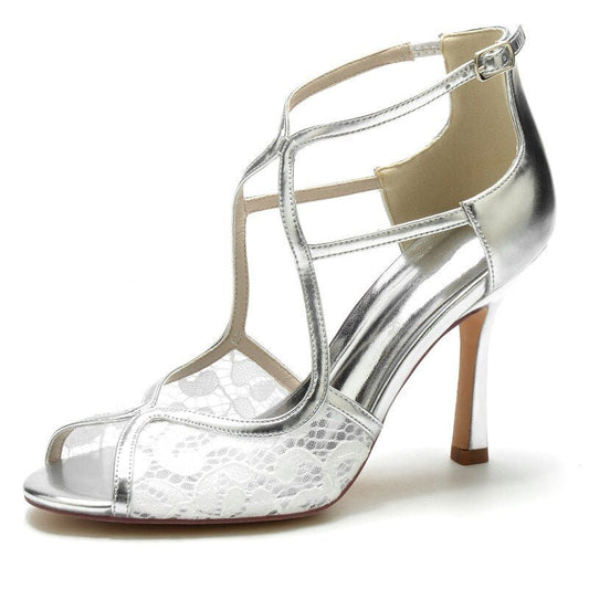 High-heeled mesh bridesmaid pointed toe wedding shoes