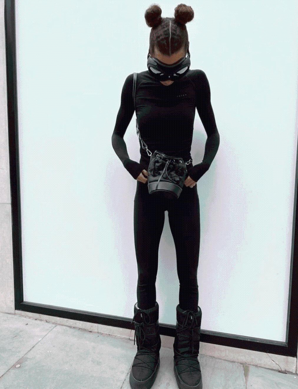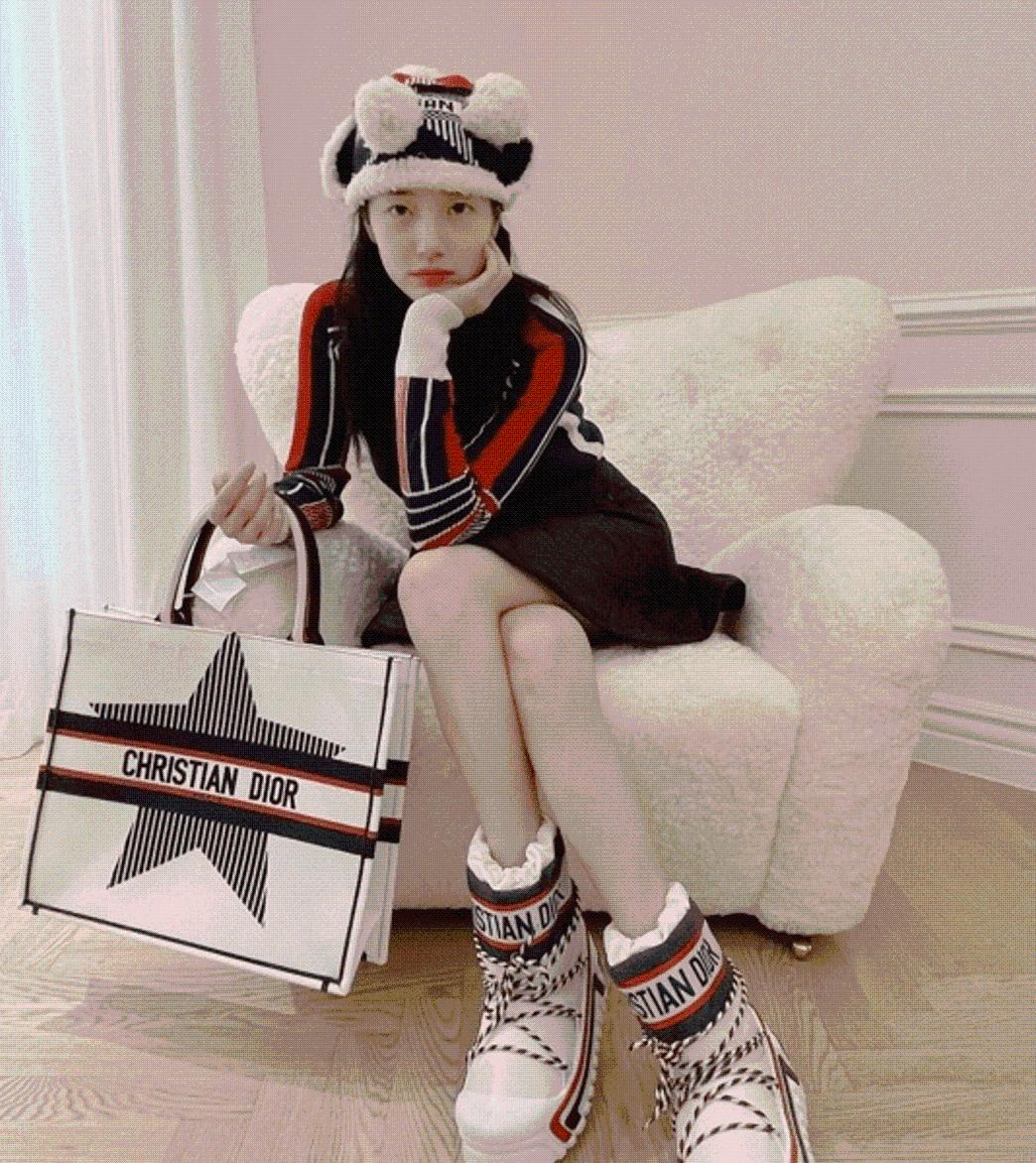 無地のほかに、模様を織り込んだ豪華なスタイルのスノーブーツも、ぜひ試してみたいアイテムです。ベルベットとレザーの融合に厚底ブーツをプラスし、ダウンジャケットや同色のニットスカートと合わせると、冬の季節感がたっぷりで、見た目も痩せている感じがしないだけでなく、コーディネート全体の最大のハイライトにもなります。