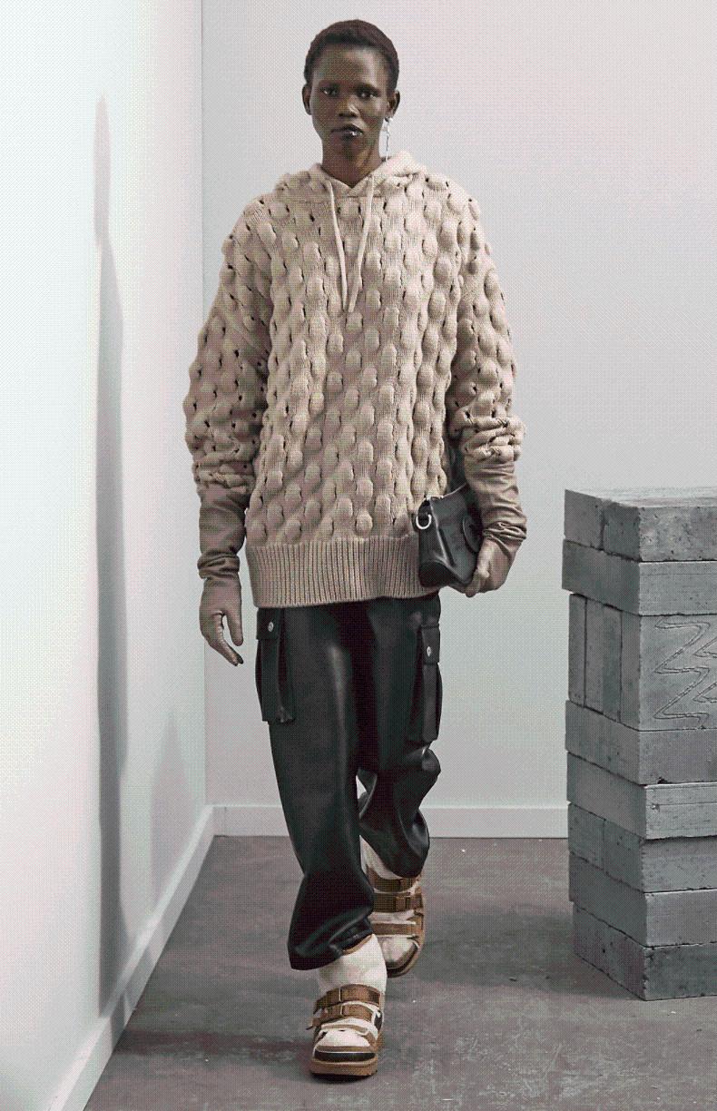Y/Projectは2021年秋冬シリーズで、服の構造と外観の認識を覆すことに力を入れています。不自然なシルエットは、曲がりくねった仕立てによってさらに際立っています。冬の厚底ブーツのデザインも、ブランドの独特な視覚言語を示しています。歪みと錯覚の二重の情報。