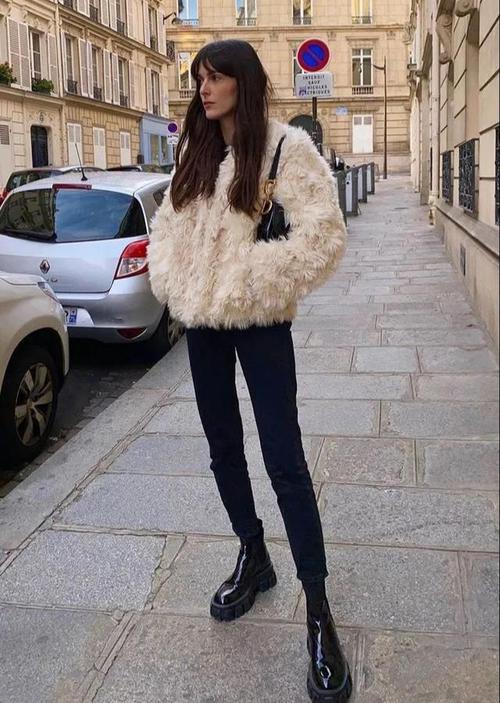 オーバーオールとレザージャケットは、ハンサムな女の子の定番の組み合わせです。冬は寒さを避けるために、ふわふわしたレザーの服を選ぶことをお勧めします。ふわふわは優しくて暖かいです。