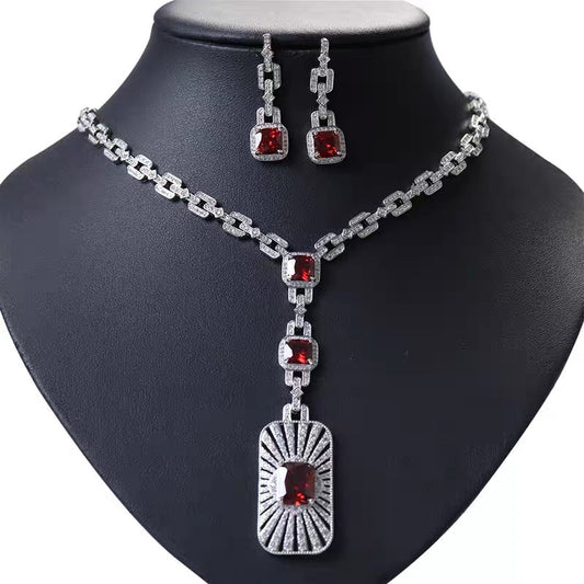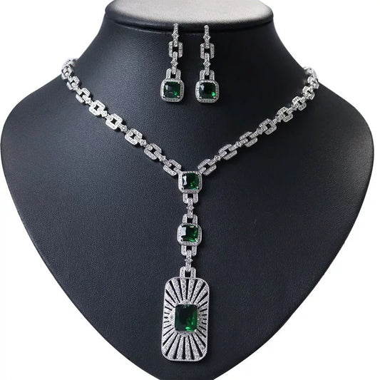 Emerald Green Teardrop Necklace & Earrings Set, Gift for Her