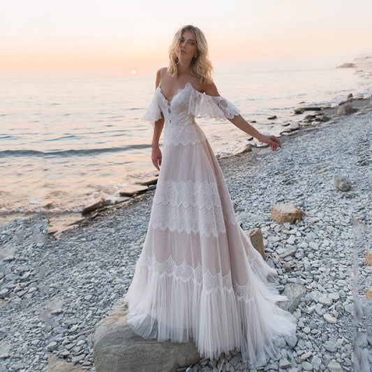 オフショルダー レース ブライダル ドレス