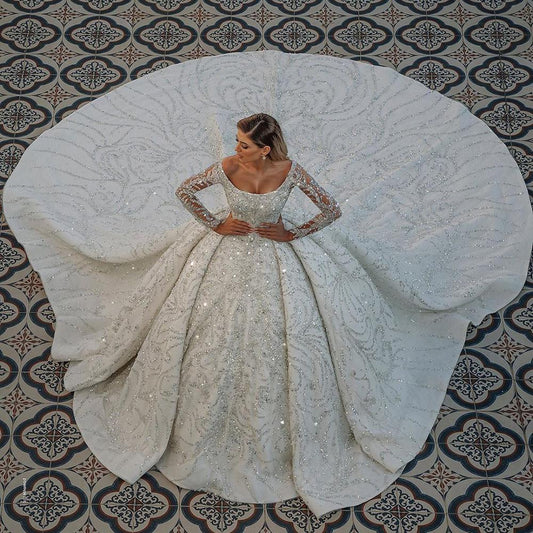 豪華なビッグボールウェディングドレス クリスタルビーズウェディングドレス Vestido De Noiva マリアージュブライダルガウン