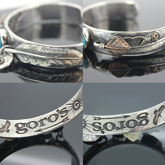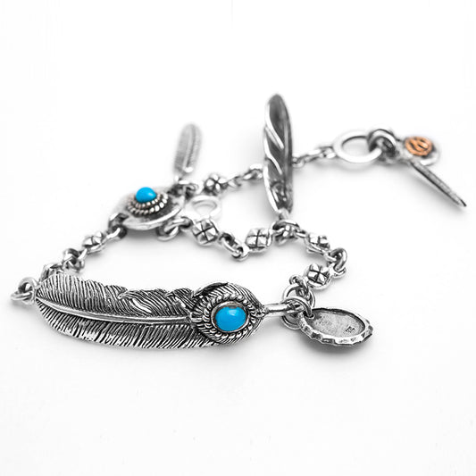 フェザーハンドメイドターコイズブレスレット 幅広インドスタイル