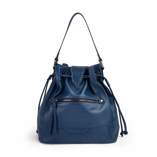 柔らかい本物の牛革の巾着型バケットバッグ。女性用デザイナー高級ハンドバッグ。高品質のクロスボディショルダーバッグ。