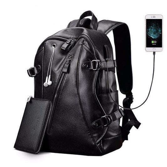 メンズバックパック 外部USB充電 防水バックパック ファッション PUレザー 旅行バッグ カジュアル スクールバッグ レザーブックバッグ