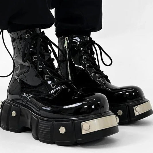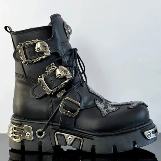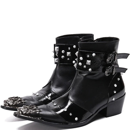 Special-shaped leather boots square head European and American first-layer cowhide black thick-soled heightening men's boots