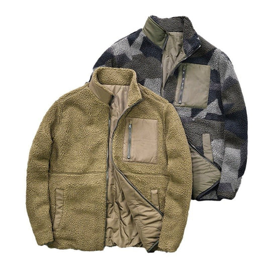 メンズ リバーシブル カモフラージュ 厚手 カシミア スタンドカラー コート