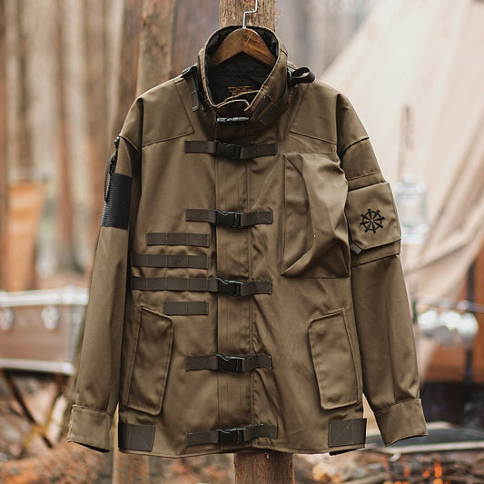 メンズ ミリタリー 防水 マルチポケット カーゴ ウィンドブレーカー コート