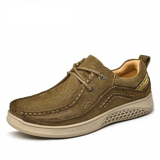 天然皮革メンズシューズ レースアップ 通気性 ソフト 秋 カジュアル フラットシューズ レトロスタイル ウォーキングシューズ メンズ Zapatillas Hombre