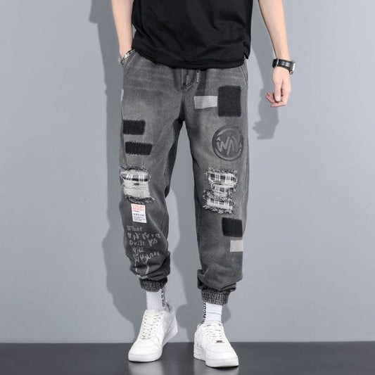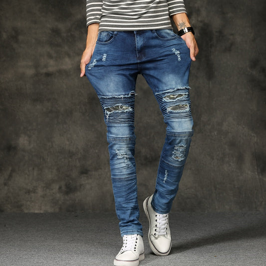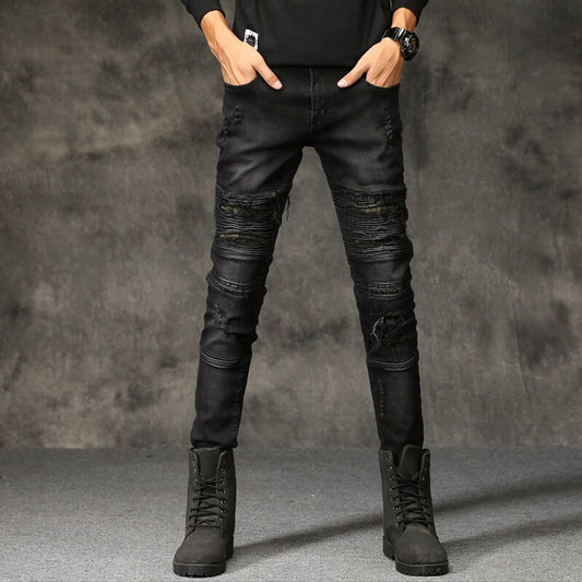 メンズ トレンディ ファッション モーターサイクル リップド デニム ジーンズ
