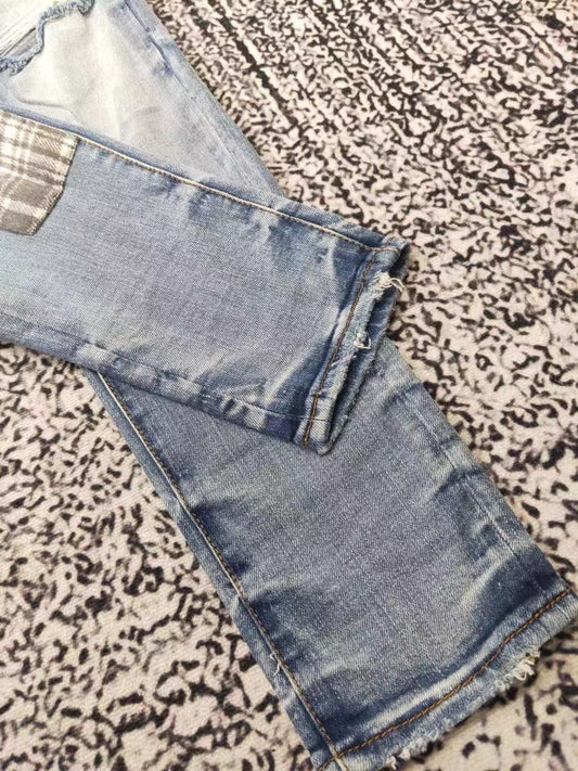 メンズ リブ パッチ ダメージ加工 ジーンズ