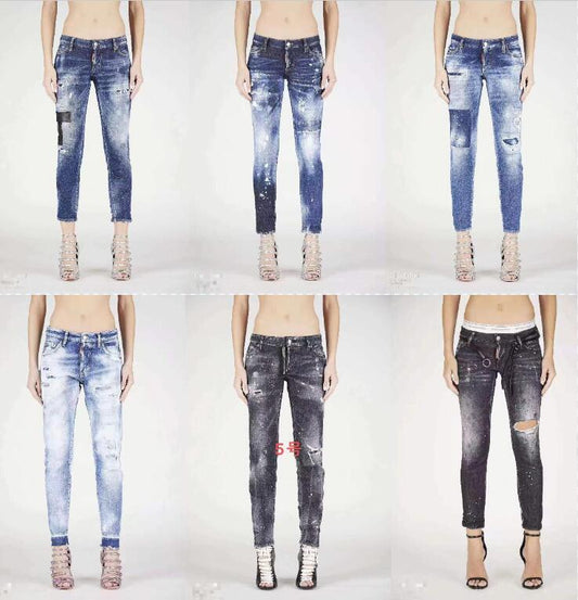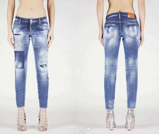 ファッションミドルウエスト刺繍ジッパージーンズ