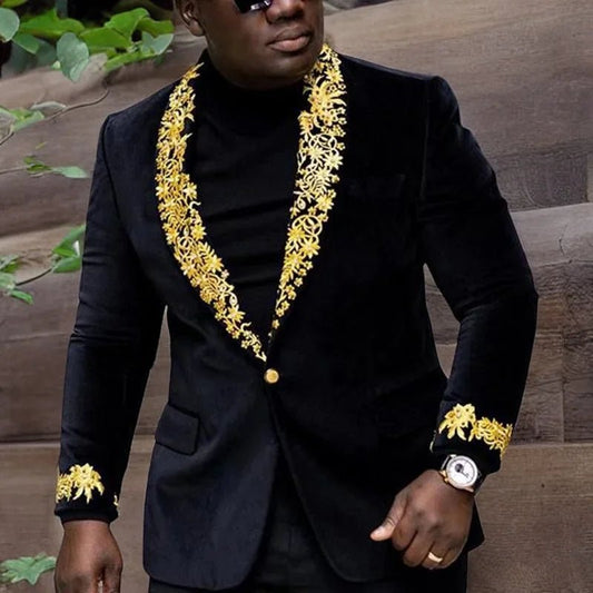 ゴールド刺繍入りメンズブラックスーツジャケット