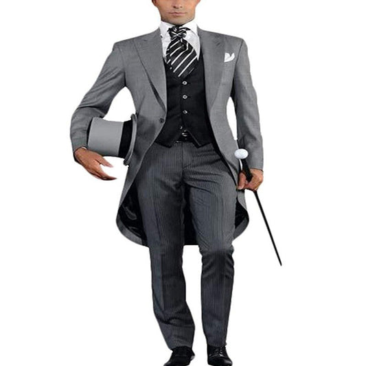 グレー ウェディング メンズ テールコート 3 ピース 新郎タキシード スーツ