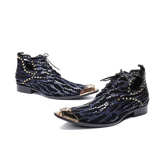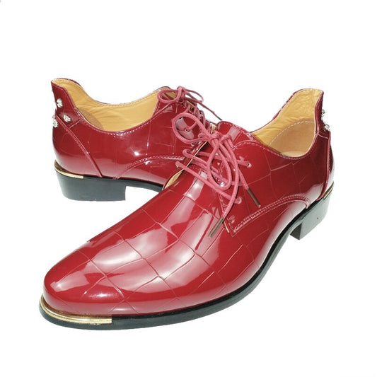 本革レースアップストリングビーズステージウェディングメンズドレスシューズハンドメイドファッション個性的な靴