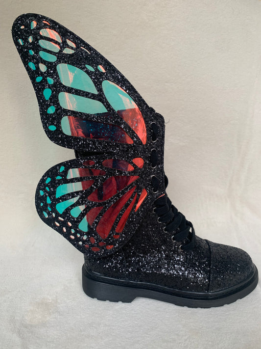 レディース ショートブーツ シルバー レザー フラット ブーティ バタフライ