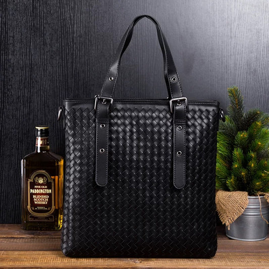 革編みメンズバッグハンドバッグブリーフケースコンピュータバッグ