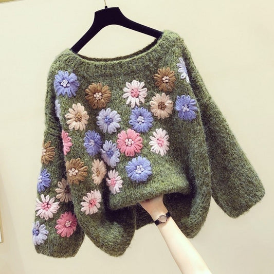 3フラワーレイジーウィンドセーター ルーズフィットセーター レディース ジャンパー
