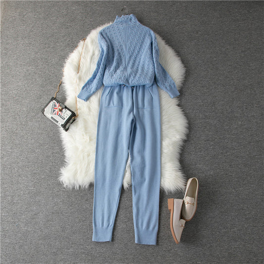 ニットトラックスーツタートルネックスウェットシャツレディーススーツ衣類