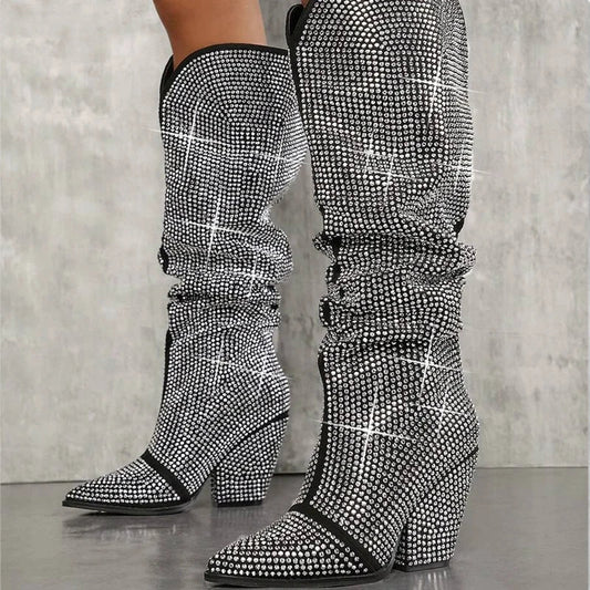 Sparking Crystal Decor Thin High Heels Shoes for Women Knee High Shoes